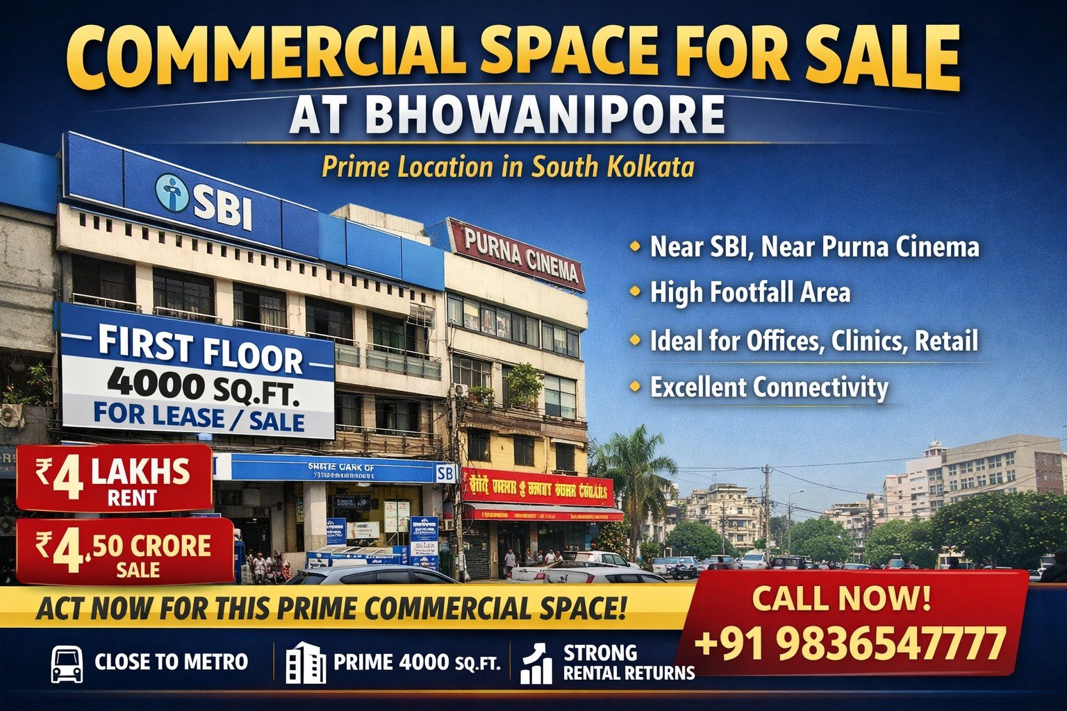 If you are searching for a premium commercial property, this COMMERCIAL SPACE FOR SALE AT BHOWANIPORE checks all the right boxes. It offers location advantage, strong rental income, and long-term appreciation.