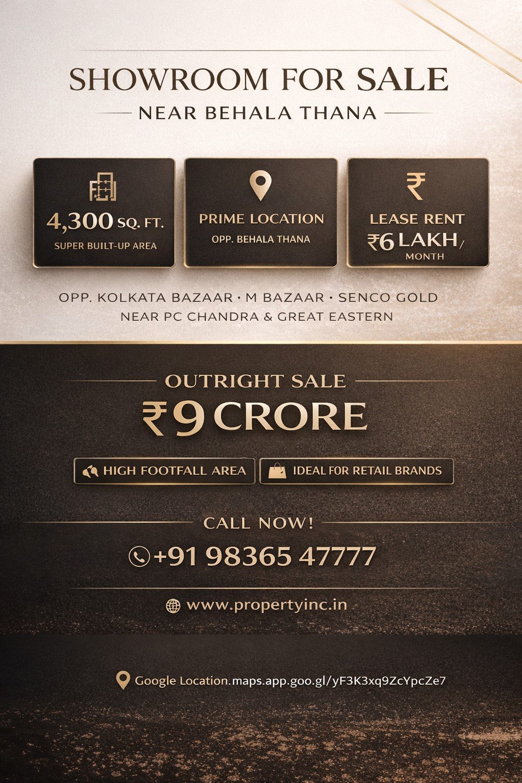 If you want a premium retail space with strong visibility and long-term value, this SHOWROOM FOR SALE NEAR BEHALA THANA is an excellent choice. Opportunities like this are limited in such established commercial zones.